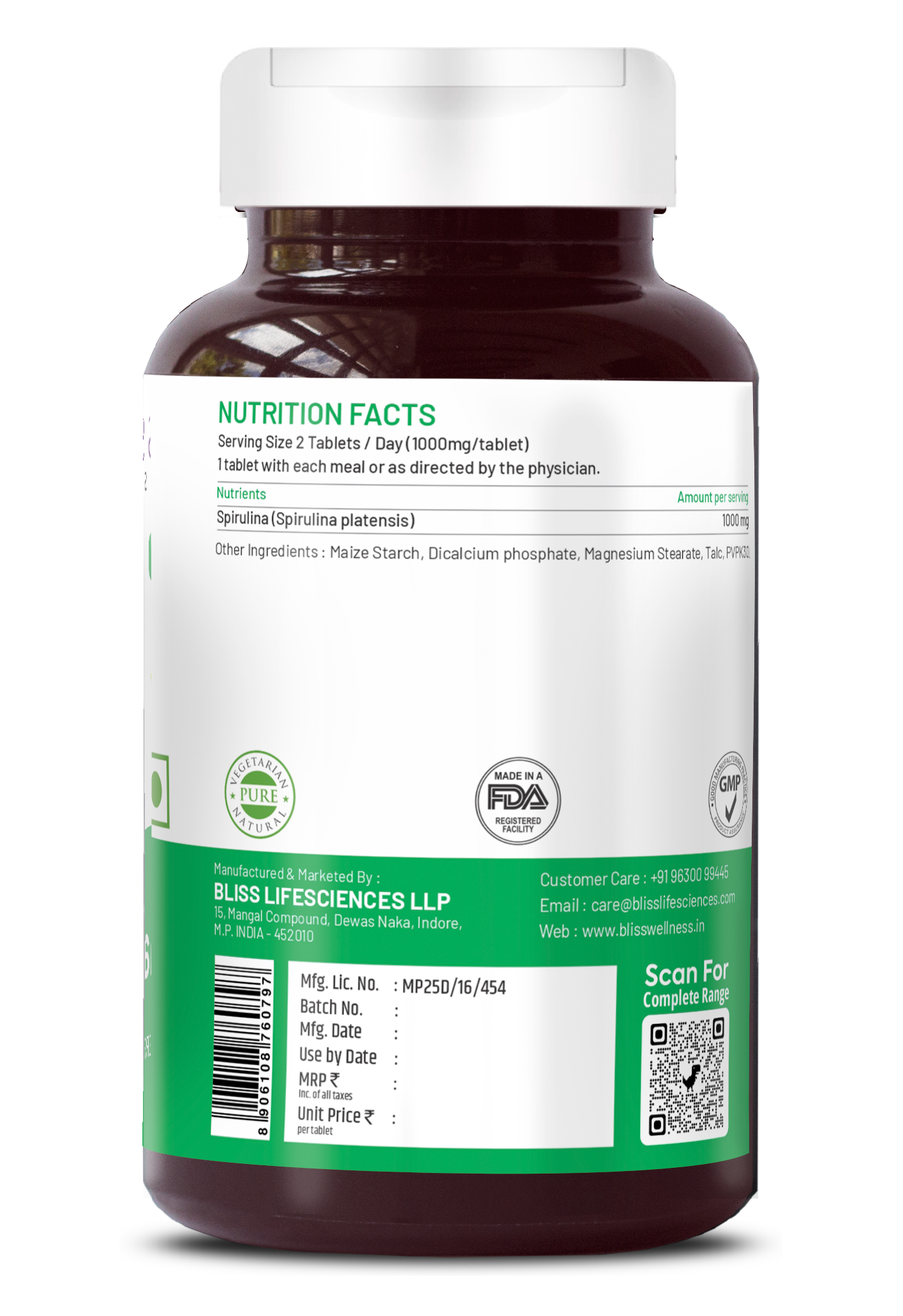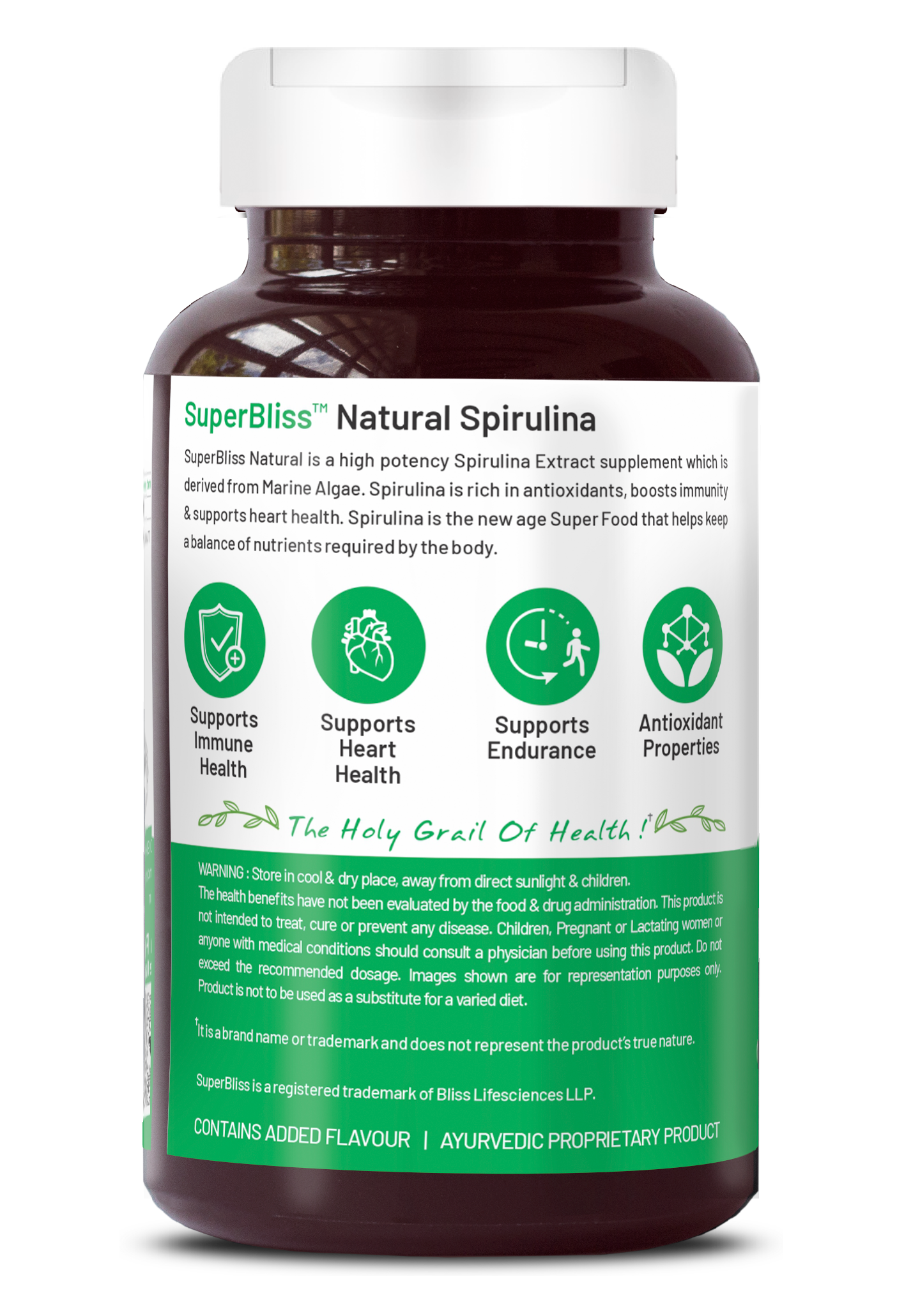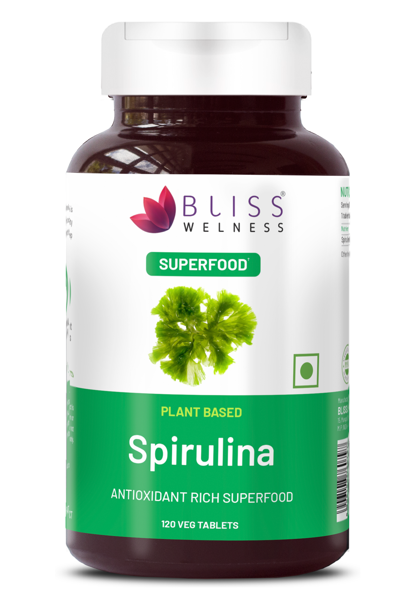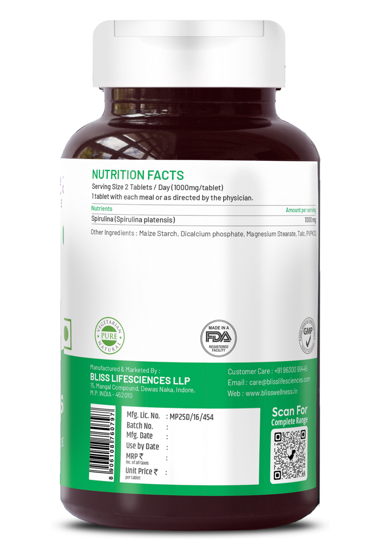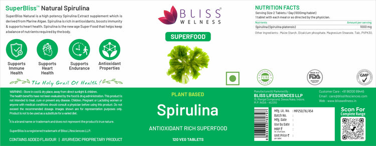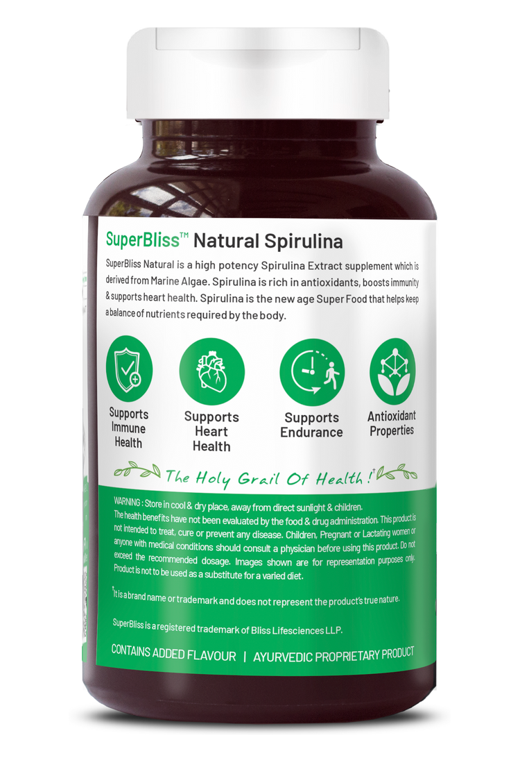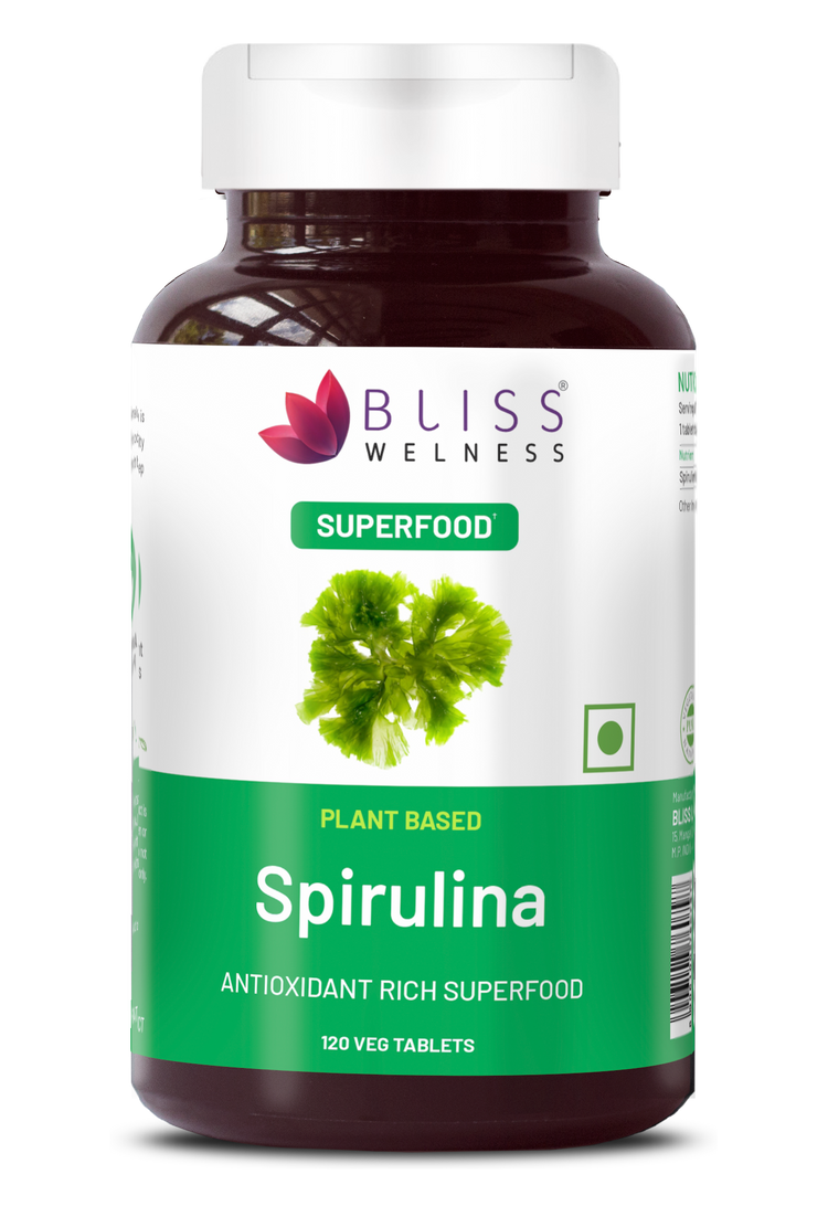 Bliss Welness SuperBliss Natural Spirulina Immunity Booster with Rich Antioxidant | Nutridense Daily Superfood | Give Energy Detox Vegetarian Health Supplement - 120 Tablets