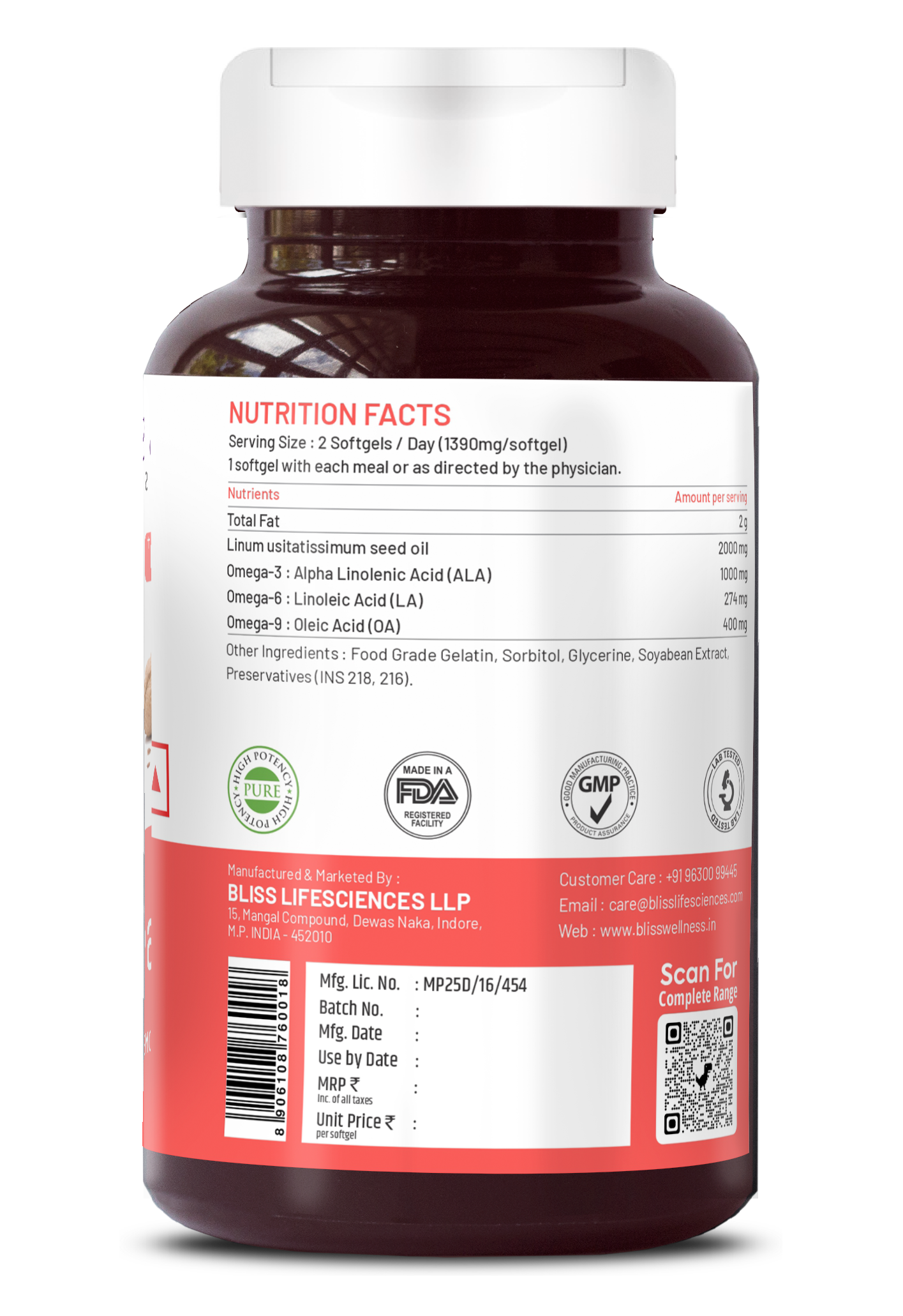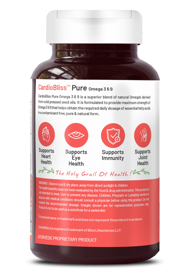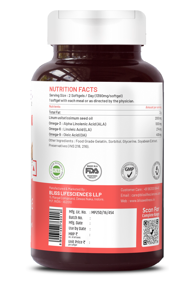 Bliss Welness CardioBliss Pure Omega 3 6 9 Omega 3 with Omega 6 & Omega 9 2000MG with ALA (Omega 3) 1000MG LA (Omega 6) 274MG OA (Omega 9) 400MG Heart Brain Eye Immunity Health Supplement - 60 Softgel Capsules - Bliss Welness Bliss Welness CardioBliss Pure Omega 3 6 9 Omega 3 with Omega 6 & Omega 9 2000MG with ALA (Omega 3) 1000MG LA (Omega 6) 274MG OA (Omega 9) 400MG Heart Brain Eye Immunity Health Supplement - 60 Softgel Capsules - Bliss Welness Bliss Welness CardioBliss Pure Omega 3 6 9 Omega 3 with Omega 6 & Omega 9 2000MG with ALA (Omega 3) 1000MG LA (Omega 6) 274MG OA (Omega 9) 400MG Heart Brain Eye Immunity Health Supplement - 60 Softgel Capsules - Bliss Welness Bliss Welness CardioBliss Pure Omega 3 6 9 Omega 3 with Omega 6 & Omega 9 2000MG with ALA (Omega 3) 1000MG LA (Omega 6) 274MG OA (Omega 9) 400MG Heart Brain Eye Immunity Health Supplement - 60 Softgel Capsules - Bliss Welness Bliss Welness CardioBliss Pure Omega 3 6 9 Omega 3 with Omega 6 & Omega 9 2000MG with ALA (Omega 3) 1000MG LA (Omega 6) 274MG OA (Omega 9) 400MG Heart Brain Eye Immunity Health Supplement - 60 Softgel Capsules - Bliss Welness