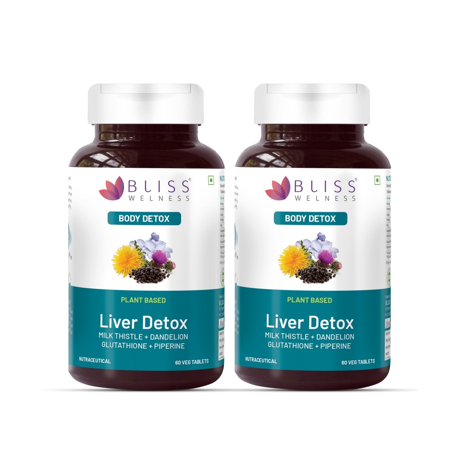 Bliss Welness DetoxBliss Liver Detox Cleanse Purifier | Milk Thistle Silymarin Dandelion Glutathione | Fatty Liver Protection Liver Care Alcohol Detox Herbal Supplement - 60 Veg Tablets
