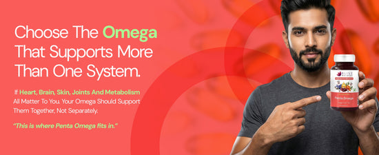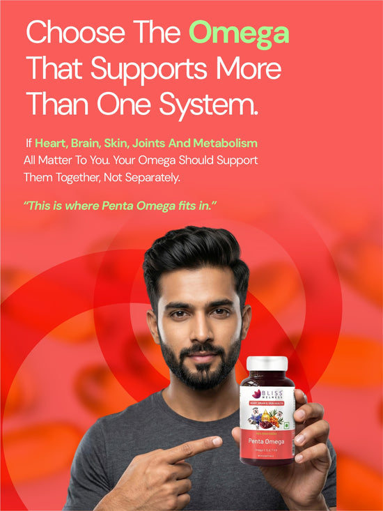 A: Penta Omega supports brain function, heart health, joint mobility, skin glow, and immune strength — all in one softgel. It helps fill essential fatty acid gaps in a typical diet, especially for those on a vegetarian plan.
