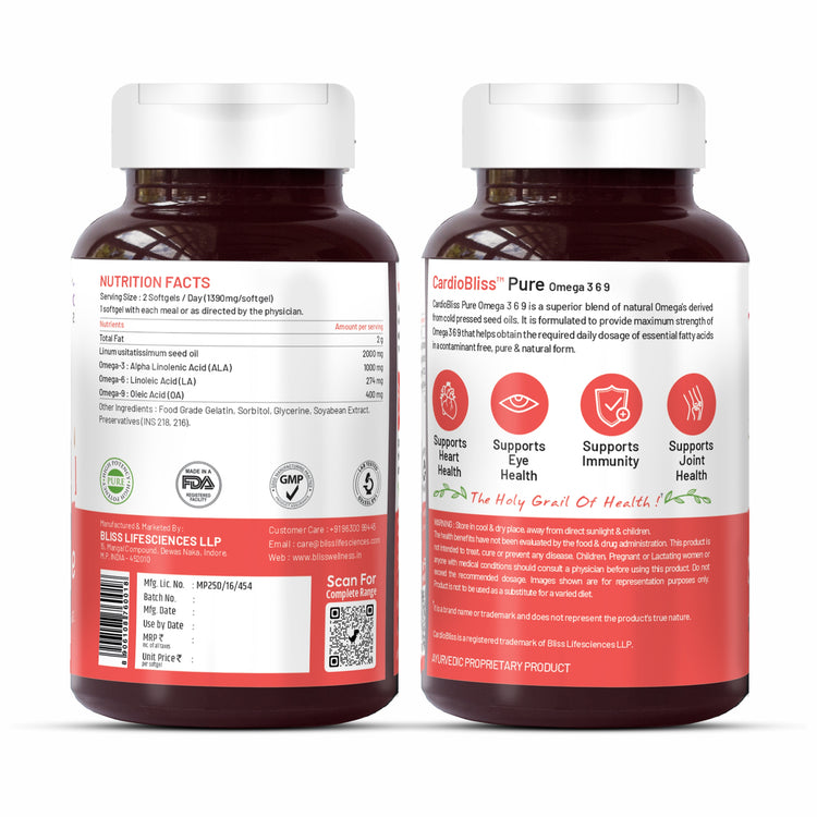 Bliss Welness CardioBliss Pure Omega 3 6 9 Omega 3 with Omega 6 & Omega 9 2000MG with ALA (Omega 3) 1000MG LA (Omega 6) 274MG OA (Omega 9) 400MG Heart Brain Eye Immunity Health Supplement - 60 Softgel Capsules - Bliss Welness Bliss Welness CardioBliss Pure Omega 3 6 9 Omega 3 with Omega 6 & Omega 9 2000MG with ALA (Omega 3) 1000MG LA (Omega 6) 274MG OA (Omega 9) 400MG Heart Brain Eye Immunity Health Supplement - 60 Softgel Capsules - Bliss Welness Bliss Welness CardioBliss Pure Omega 3 6 9 Omega 3 with Omega 6 & Omega 9 2000MG with ALA (Omega 3) 1000MG LA (Omega 6) 274MG OA (Omega 9) 400MG Heart Brain Eye Immunity Health Supplement - 60 Softgel Capsules - Bliss Welness Bliss Welness CardioBliss Pure Omega 3 6 9 Omega 3 with Omega 6 & Omega 9 2000MG with ALA (Omega 3) 1000MG LA (Omega 6) 274MG OA (Omega 9) 400MG Heart Brain Eye Immunity Health Supplement - 60 Softgel Capsules - Bliss Welness Bliss Welness CardioBliss Pure Omega 3 6 9 Omega 3 with Omega 6 & Omega 9 2000MG with ALA (Omega 3) 1000MG LA (Omega 6) 274MG OA (Omega 9) 400MG Heart Brain Eye Immunity Health Supplement - 60 Softgel Capsules - Bliss Welness Bliss Welness CardioBliss Pure Omega 3 6 9 Omega 3 with Omega 6 & Omega 9 2000MG with ALA (Omega 3) 1000MG LA (Omega 6) 274MG OA (Omega 9) 400MG Heart Brain Eye Immunity Health Supplement - 60 Softgel Capsules - Bliss Welness Bliss Welness CardioBliss Pure Omega 3 6 9 Omega 3 with Omega 6 & Omega 9 2000MG with ALA (Omega 3) 1000MG LA (Omega 6) 274MG OA (Omega 9) 400MG Heart Brain Eye Immunity Health Supplement - 60 Softgel Capsules - Bliss Welness