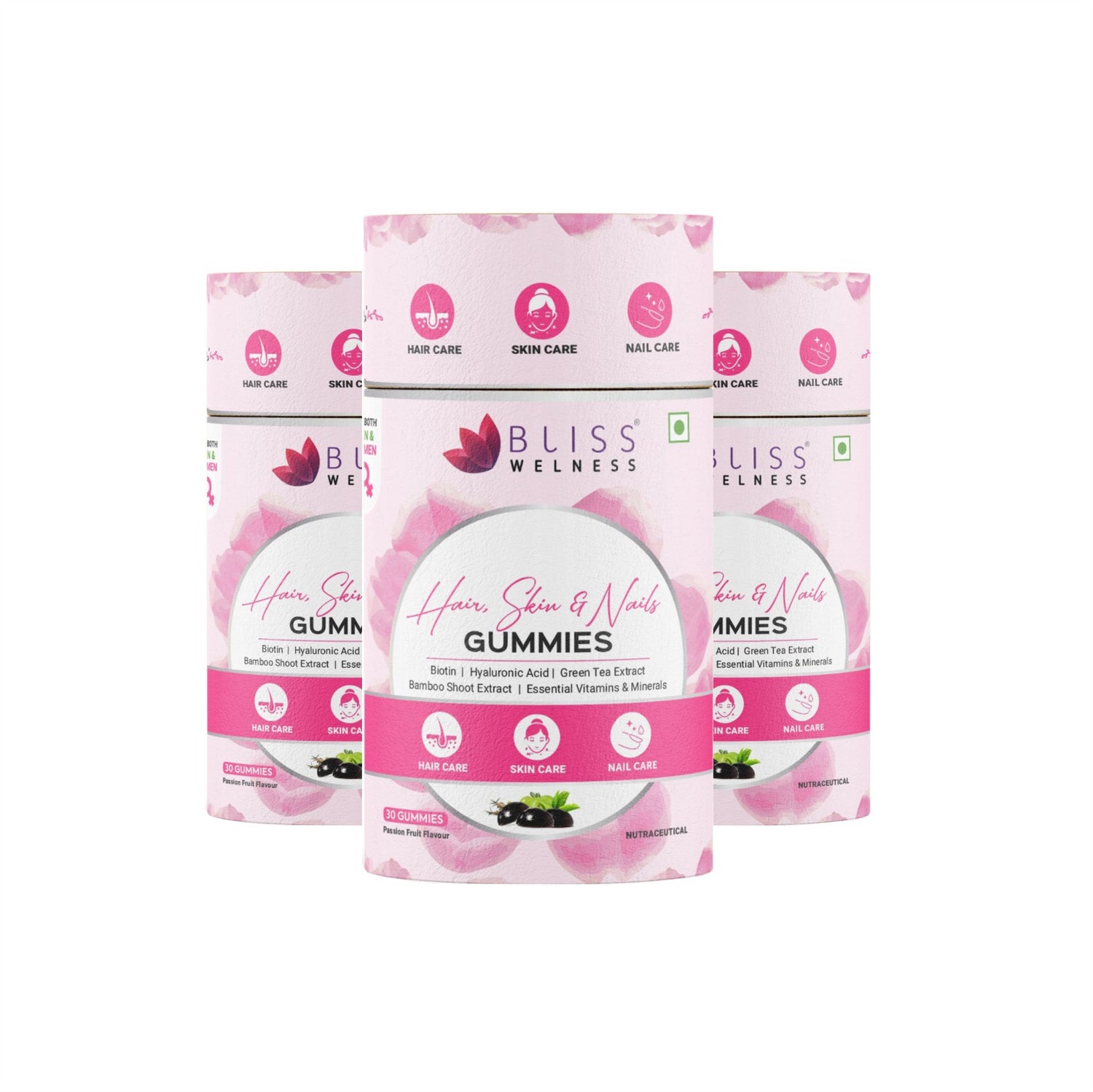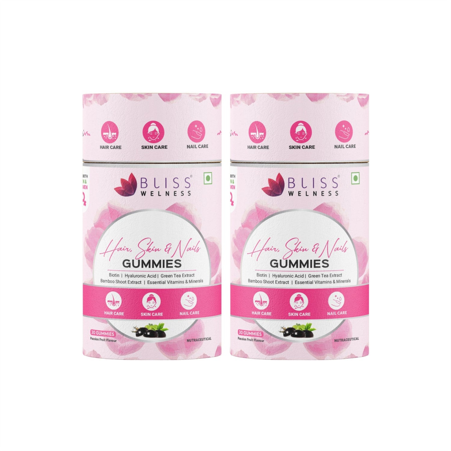Bliss Welness Biotin Hair, Skin & Nails Gummies - Hyaluronic Acid, Green Tea Extract, Bamboo Shoot, Multivitamin and Minerals | Supports Hair Strength, Skin Radiance & Nail Growth, Passion Fruit Flavor - 30 Gummies