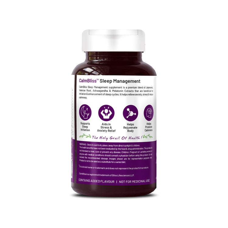 Bliss Welness CalmBliss Sleep Management Combo Of Jatamansi, Ashwagandha, Valerian Root & Melatonin For Good Sleeping Cycle - 60 Veg Tablets
