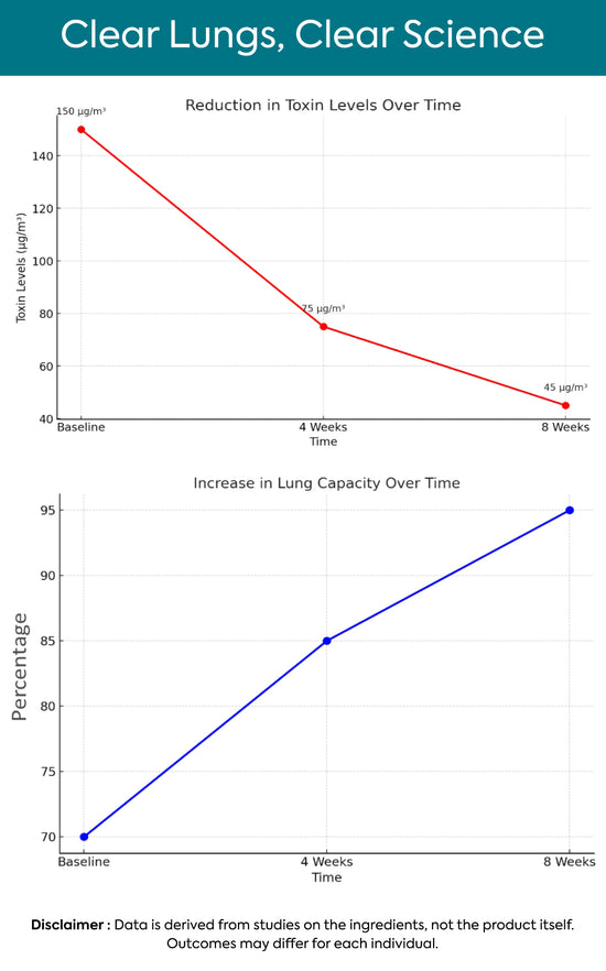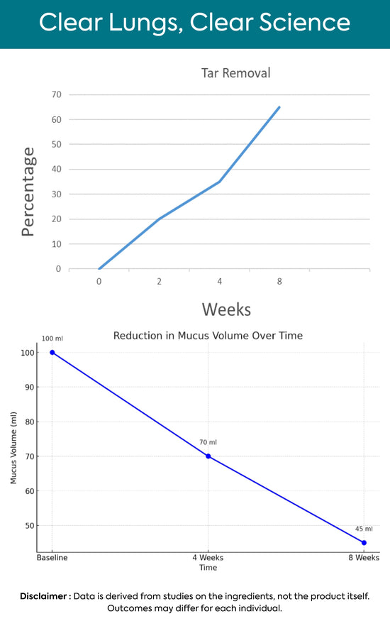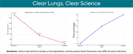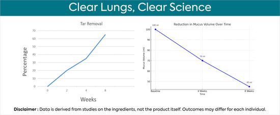 Ingredients like Vasaka, Curcumin, and Trikatu help flush out toxins, tar, and mucus from your lungs. These herbs work at the cellular level to eliminate harmful substances that may have accumulated due to pollution, smoking, or other lifestyle factors. -