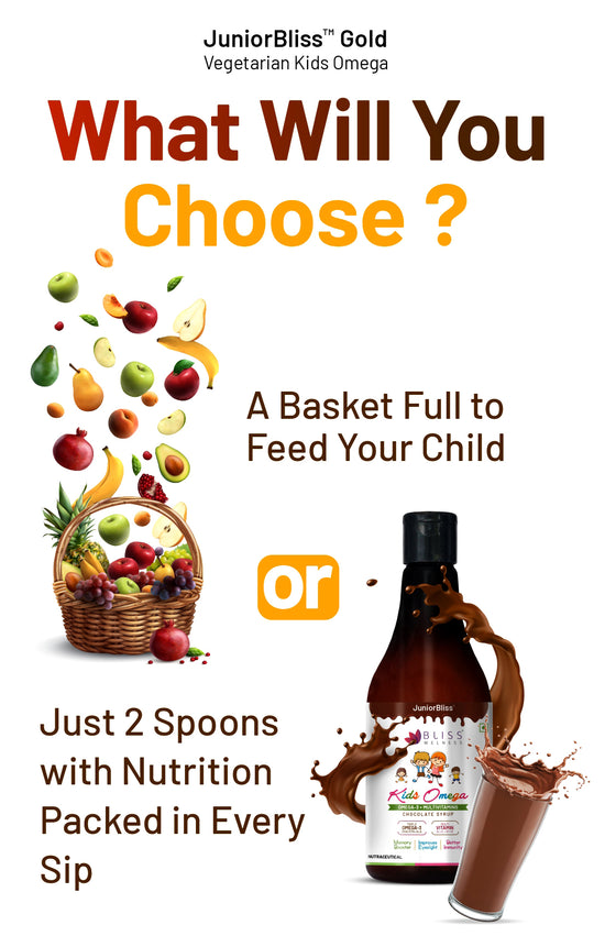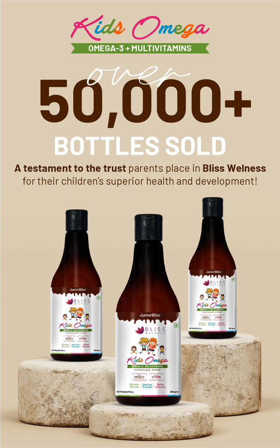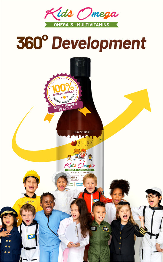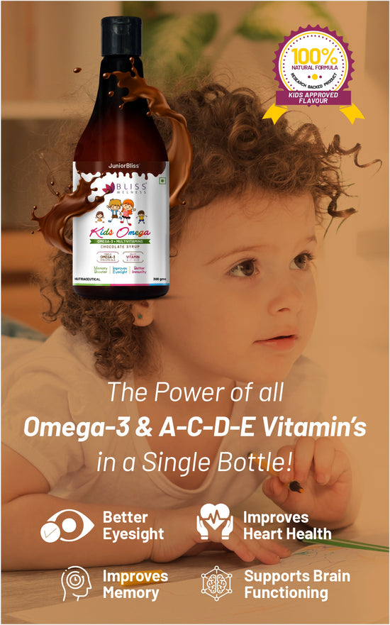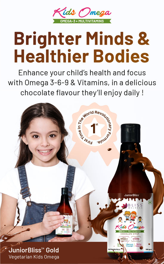 JuniorBliss Gold is specially formulated for children aged 2 and above. It combines Omega 3, 6, and 9 with essential vitamins to support overall growth, immune strength, and cognitive development.