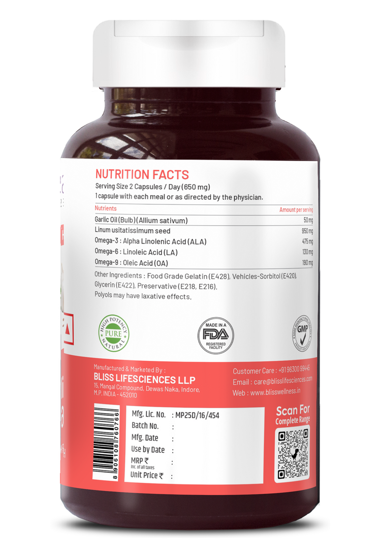 Bliss Welness CardioBliss Natural Cholesterol Management Immunity Boost | Garlic Oil + Omega 3 6 9 Oil | Heart & Weight Management Detox Antioxidant Supplement - 60 Softgel Capsules - Bliss Welness Bliss Welness CardioBliss Natural Cholesterol Management Immunity Boost | Garlic Oil + Omega 3 6 9 Oil | Heart & Weight Management Detox Antioxidant Supplement - 60 Softgel Capsules - Bliss Welness Bliss Welness CardioBliss Natural Cholesterol Management Immunity Boost | Garlic Oil + Omega 3 6 9 Oil | Heart & Weight Management Detox Antioxidant Supplement - 60 Softgel Capsules - Bliss Welness Bliss Welness BrainBliss Platinum Omega - 3 DHA+ EPA+ MCT Prenatal Postnatal Mother & Child Care | For Pregnant & Lactating Mothers | Brain Heart, Mother & Child Health Supplement - 60 Vegetarian Capsules - Bliss Welness