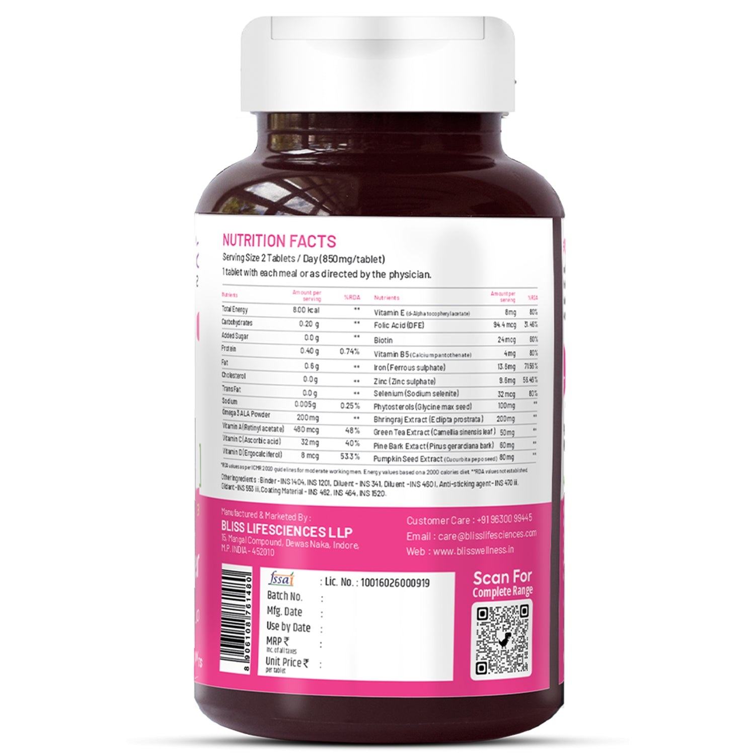 Bliss Welness BeautyBliss Hair Vitamins with Omega-3 + Bhringraj + Green Tea + Phytosterols| For Stronger, Better & Fast Hair Growth- 60 Veg Tabs