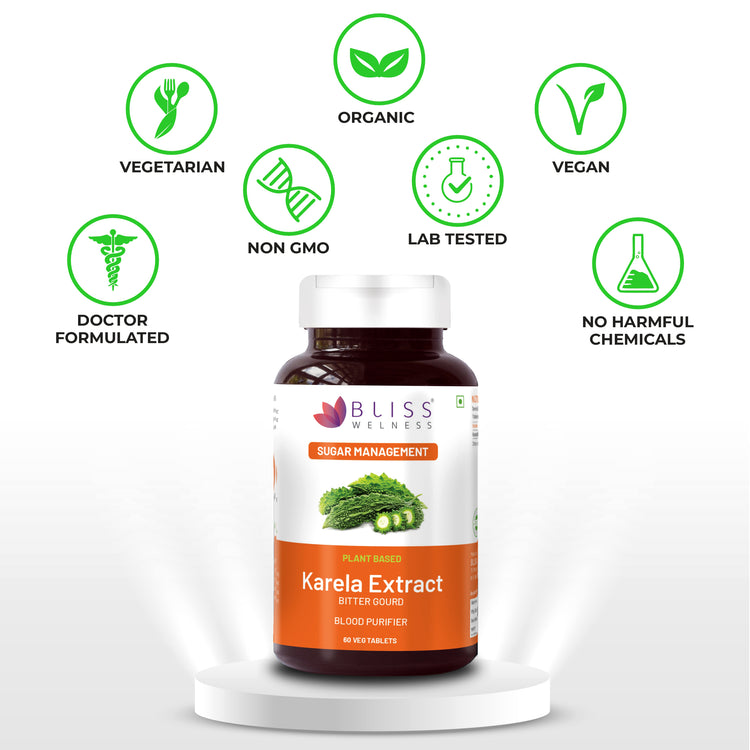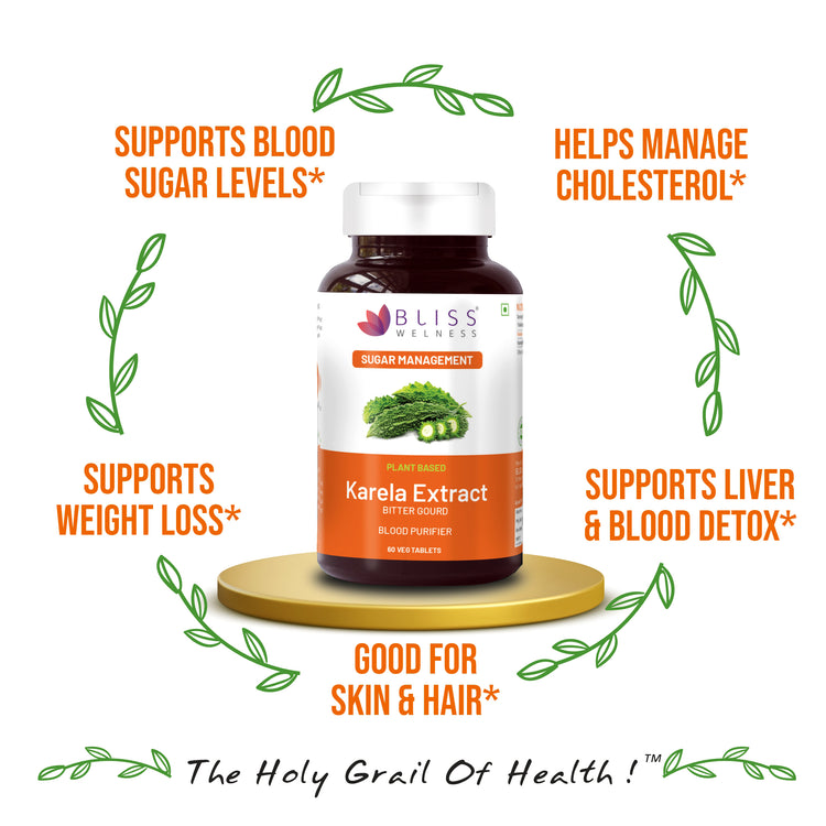 • BLOOD SUGAR MANAGEMENT : Karela extract consists of compounds that have glucose reducing effects therefore it effectively helps manage blood sugar levels.