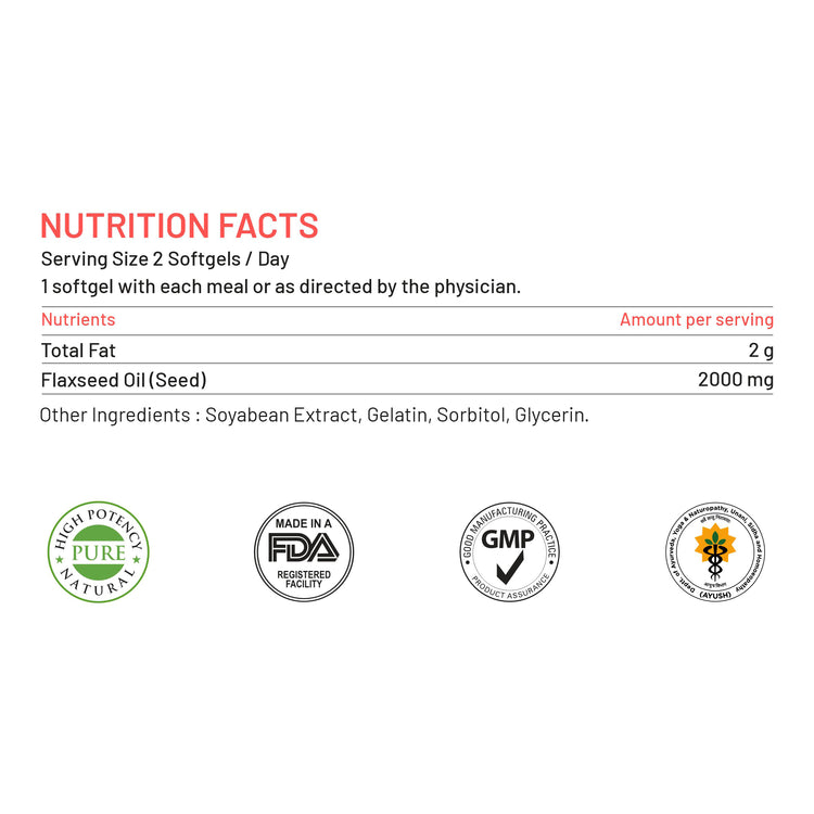 • HIGH POTENCY OMEGA 3 6 9 CONCENTRATION - Bliss Welness Flaxseed Oil Capsules contain premium extra virgin cold pressed flaxseed oil which is formulated for maximum efficacy and effectiveness with highest 2000MG Flaxseed Oil per serve giving high concentrations of Omega 3 Omega 6 & Omega 9.