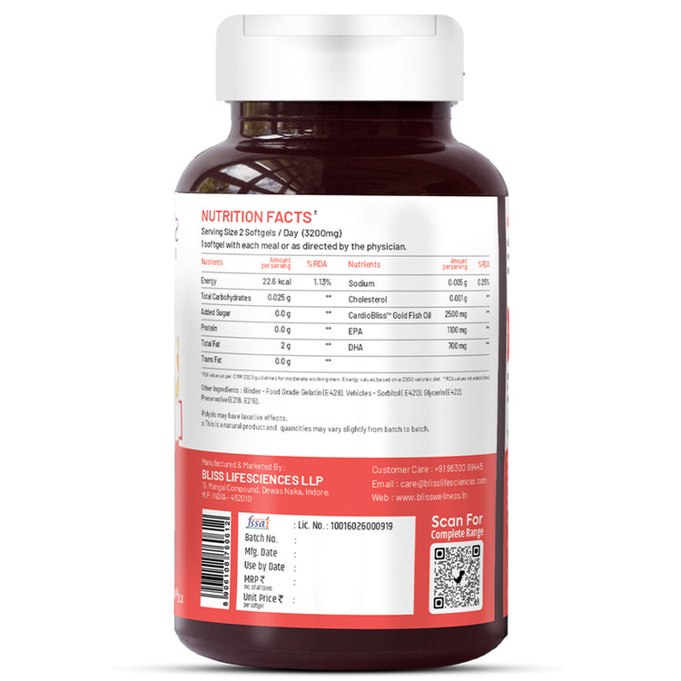 Bliss Welness Omega-3 is a potent fish oil supplement designed to support heart, brain, and joint health. It is suitable for anyone seeking overall wellness, including active individuals.